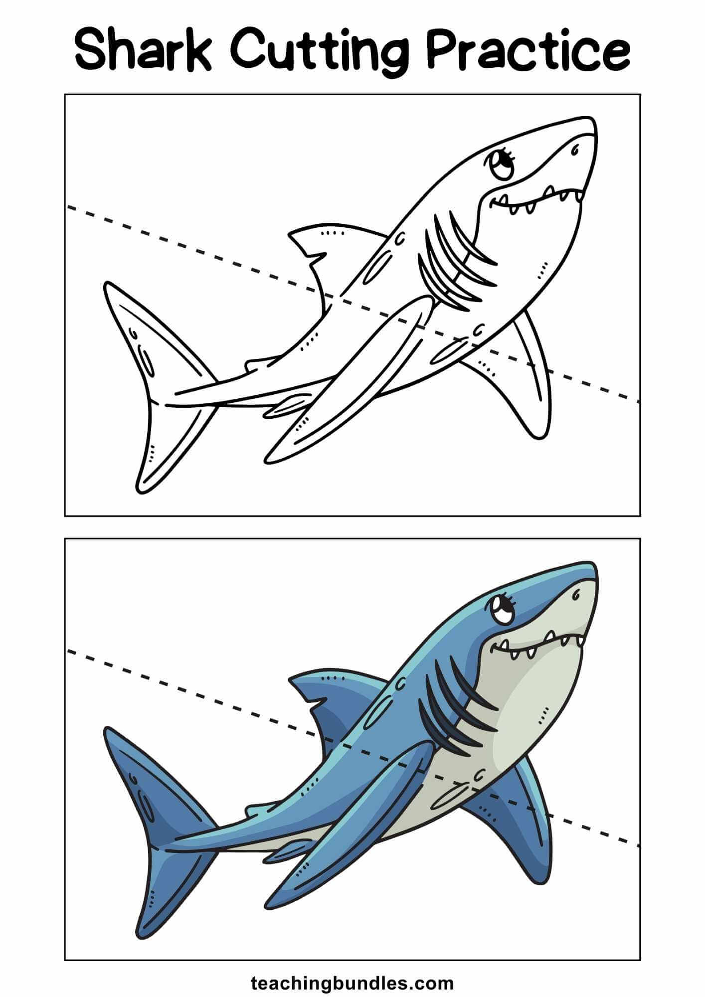 The Shark Activity Learning Bundle contains 43 printable pages designed for preschoolers with activities focusing on tracing, cutting, and handwriting skills. This instant downloadable pack provides hands-on learning experiences to develop fine motor skills and early literacy through fun shark-themed worksheets.
