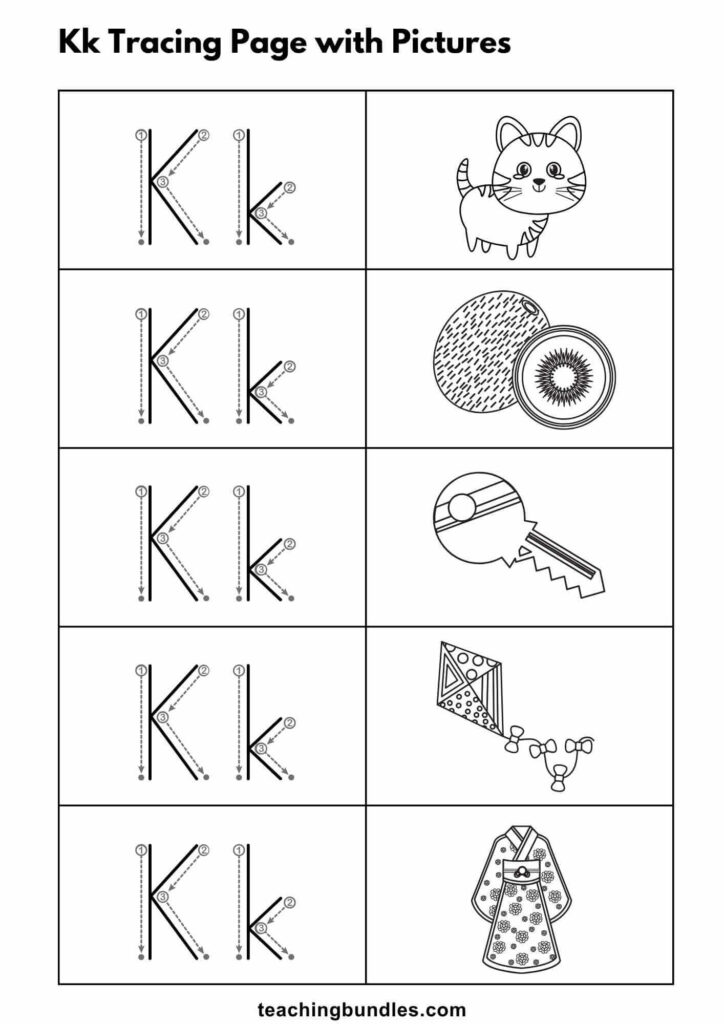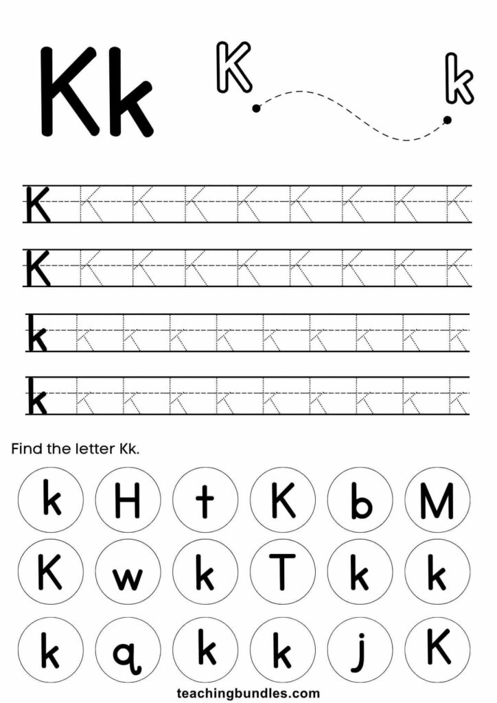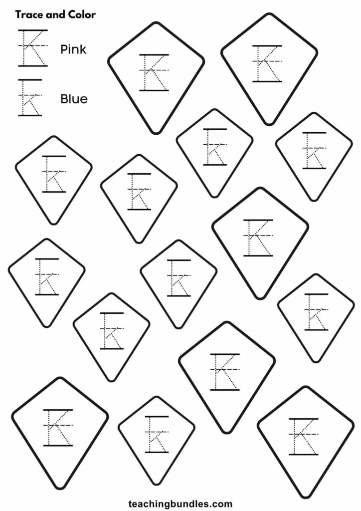 Letter K Tracing Activity Worksheets